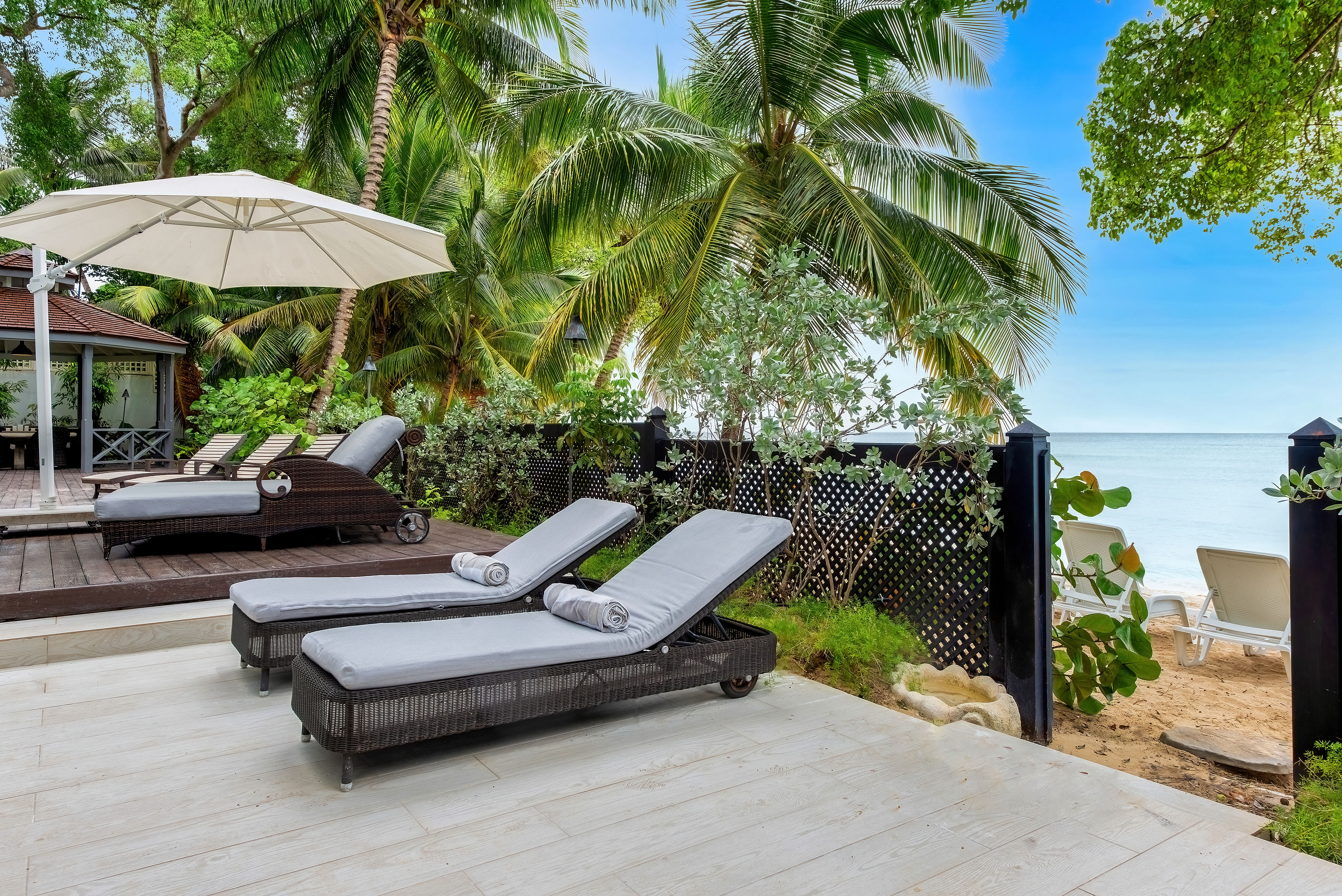 Meandering through the tropical oasis on the paved pathway an opening presents a sprawling 200’ deck area with uninterrupted views of world famous Gibbes Beach and the ocean, there is nothing between you and the horizon.